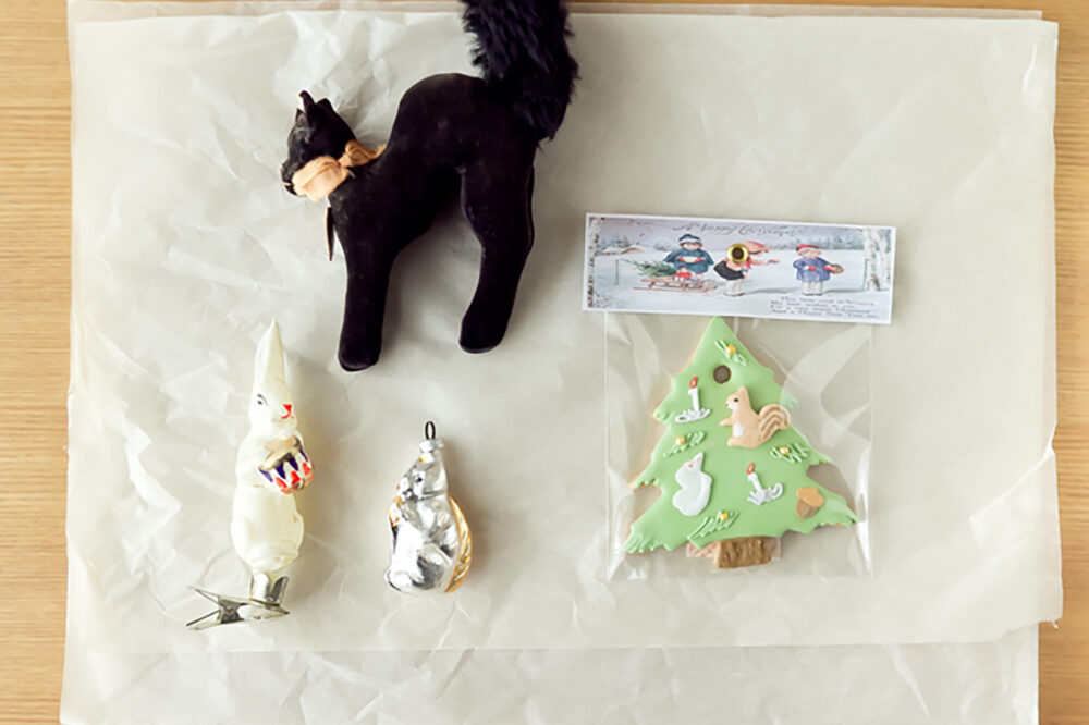 シュタイフの黒猫とビンテージクリスマスオーナメント、超絶アイシングクッキー